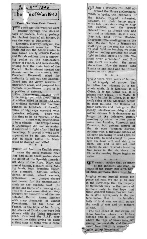 What a perfectly ghastly time you are having over there. We read all about your frightful weather, road blocks, train blocks, and blocks in general including blockheads. Here we are used to, and prepared for, that sort of weather. Really I feel so darned sorry for everyone there, and the cold houses, and the factories shut down. Really serious. Dear old Churchill! Isn’t he priceless! In the House he made one of those wonderful remarks. In the States of course such doings as weather and troubles you’ve been having would have been an “unprecedented disaster”. Churchy [sic] calls it “an awkward situation”. Lovely! Quite inline with calling Hitler “that wicked man”. Learn today - this afternoon’s papers - that the weather has turned bad again and more snow for you. Brrr! Friend of mine heard from her Aunt in Staffordshire: she hadn’t had a fire for three weeks. Do so hope Peggy’s parcel has arrived ere this and that she has been able to use her high boots and the snuggy ‘jamas. Wonder you’re not all dead. Today, here, it is blowing a helluva blizzard - 10 above zero - but the rotary snowploughs are chugging along, and the special contraptions are at work on the railroads so everything is fine. Then again our houses are built against cold with double storm windows etc. Not that we ever use them in this apartment: place is like an oven. (I feel very catty to have said that with al you are going through. Skip it, please).