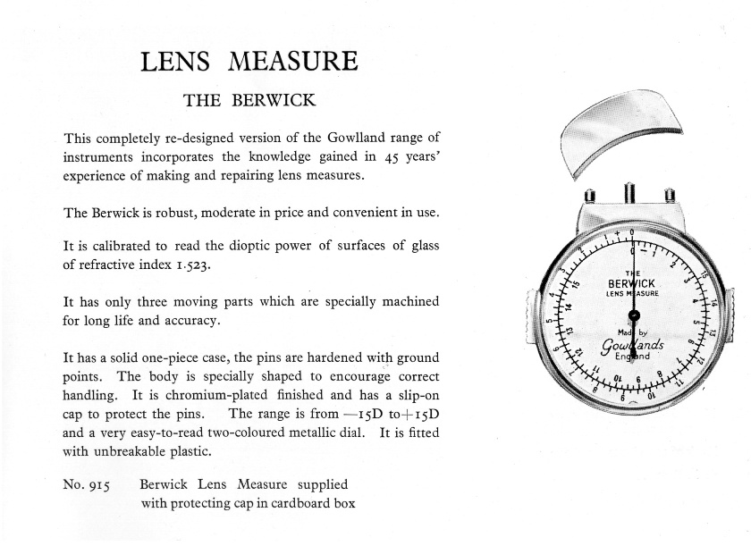 Berwick Lens Measure - see Geoff's letter of 6th August